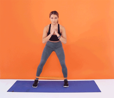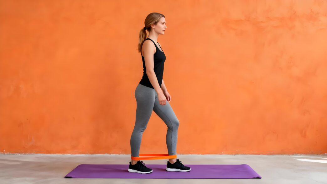 - Place a Resistance Band around your ankles and stand with feet shoulder-width apart.