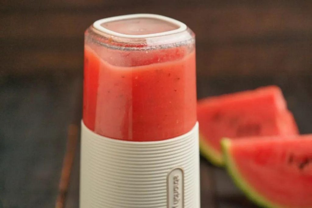 1、Puree the watermelon in a blender and strain the juice to remove pulp.