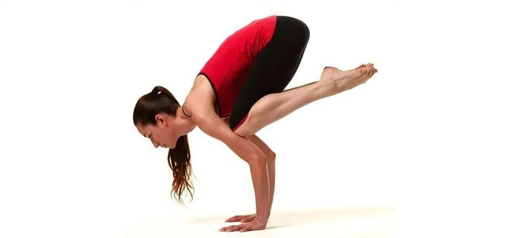 From Boat Pose, squat and place hands on the mat. Bend elbows, place knees near armpits. Lean forward, lift one foot, then the other. Engage core and arms, hold for five breaths.