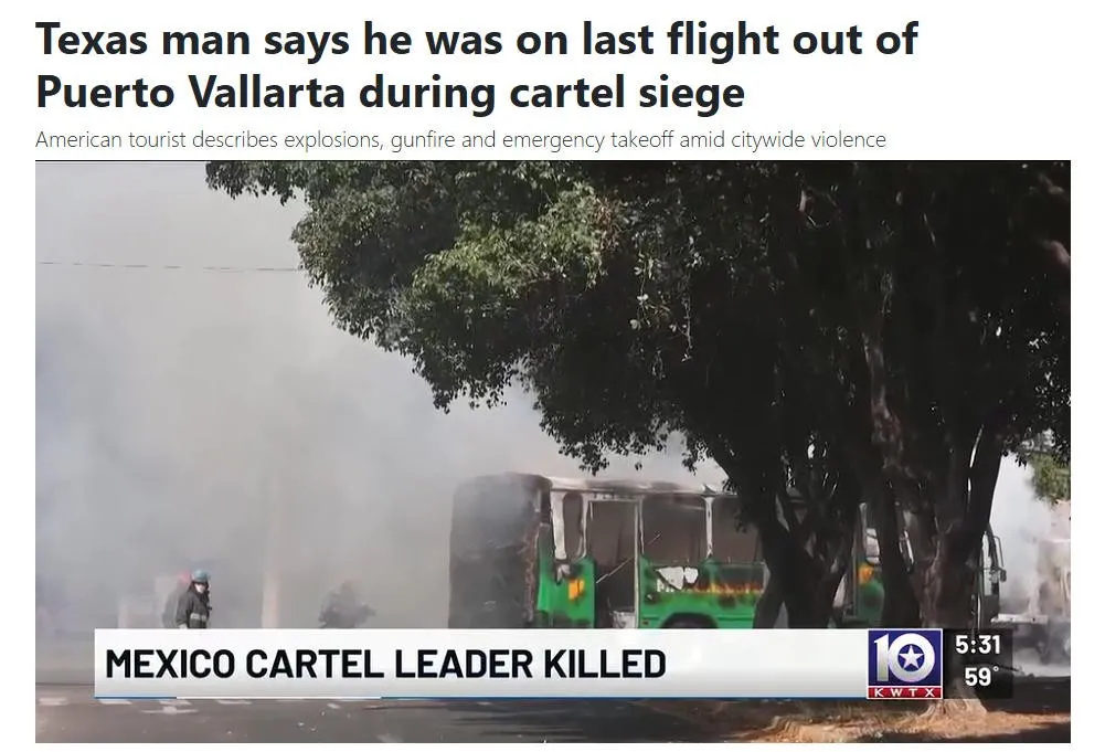 Meanwhile, in Guadalajara, the capital of Jalisco, violence spread. Armed gangs set fires across the city and occupied its airport. Civilians scrambled for cover, mirroring the desperation of the fleeing dog.