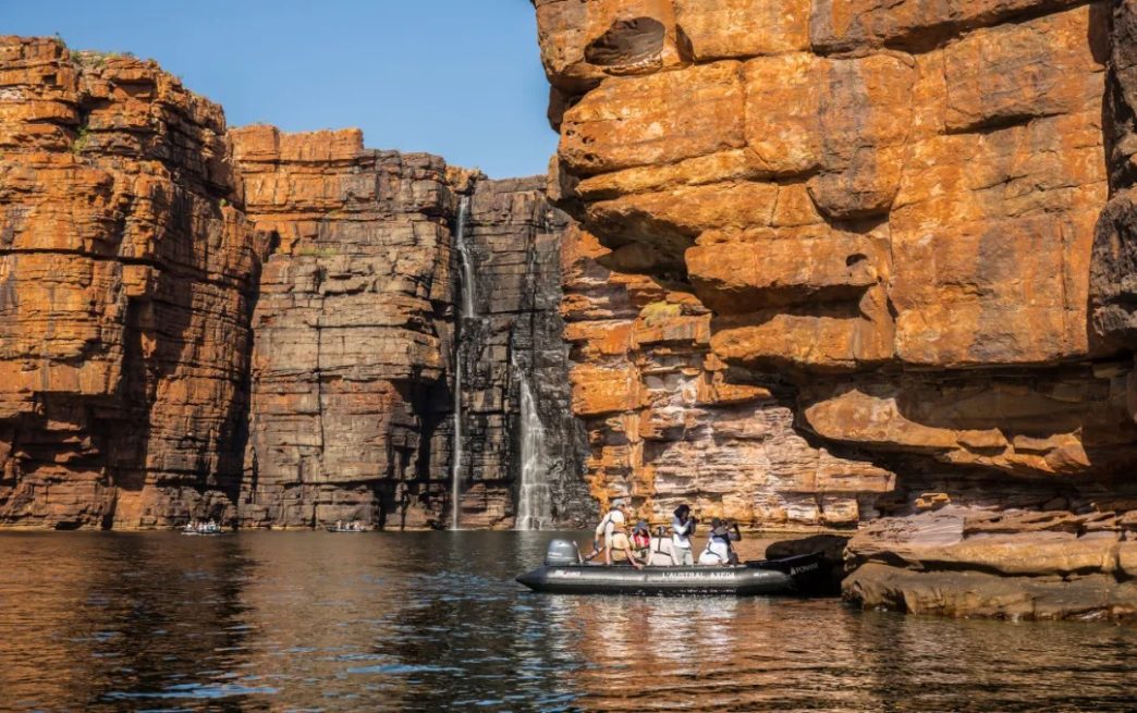 From the air, visitors can admire tiered waterfalls cascading through ancient sandstone landscapes—one of the Kimberley’s most iconic sights.