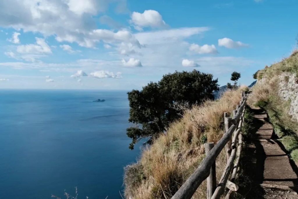 As you hike, you’ll spot the iconic island of Capri shimmering on the horizon like a jewel in the sea.