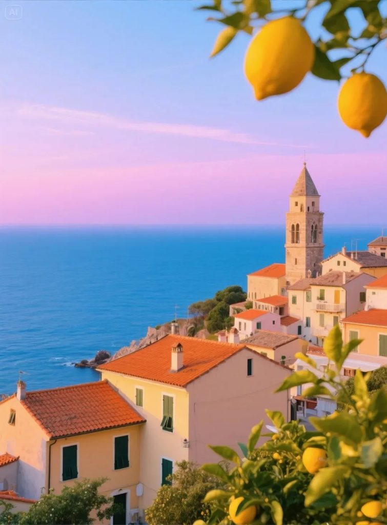 On one side: rugged mountains. On the other: endless ocean views. Along the way, you’ll pass lemon groves and olive trees, with fresh citrus scents drifting through the air—nature’s own aromatherapy.