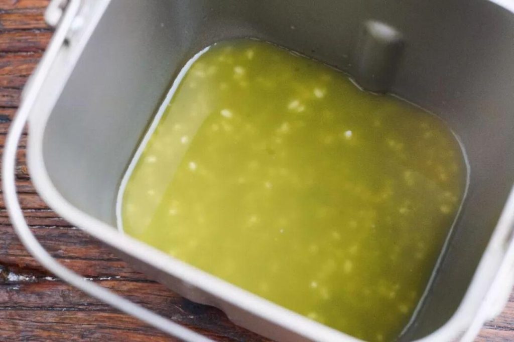 将泡好的米沥干,放入面包机中。加水直到达到米的高度。加入2克抹茶粉,搅拌。盖上盖子,设置为麻糬程序(约 50 分钟)。