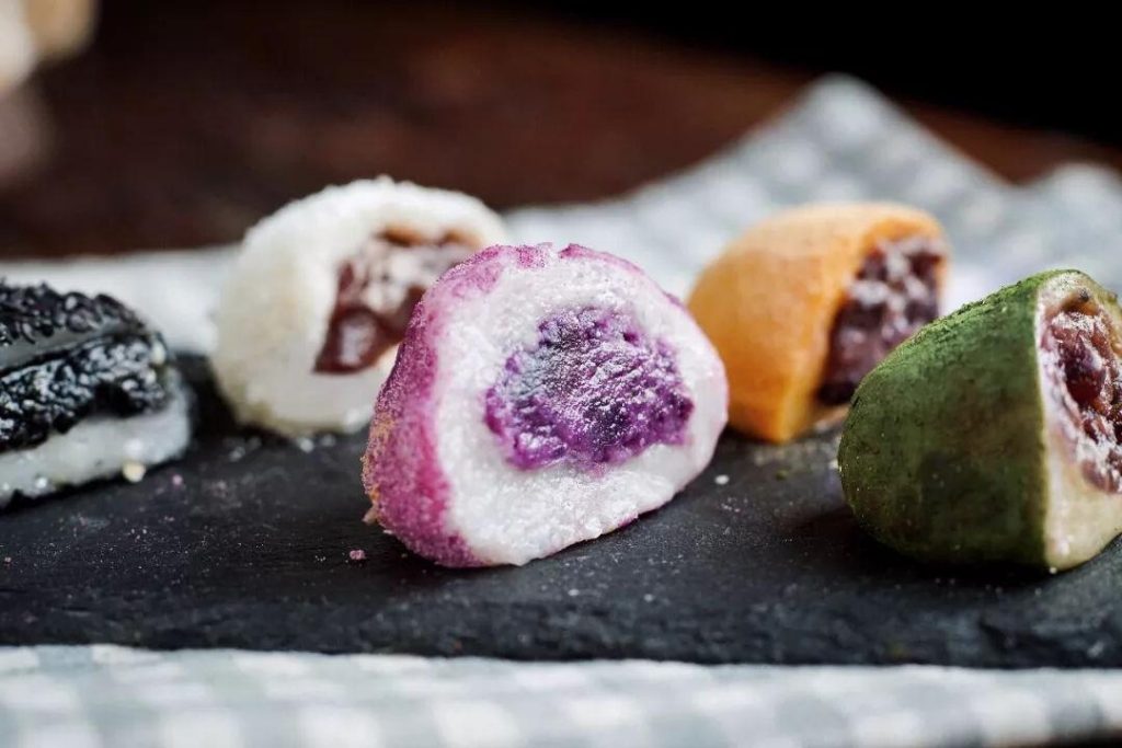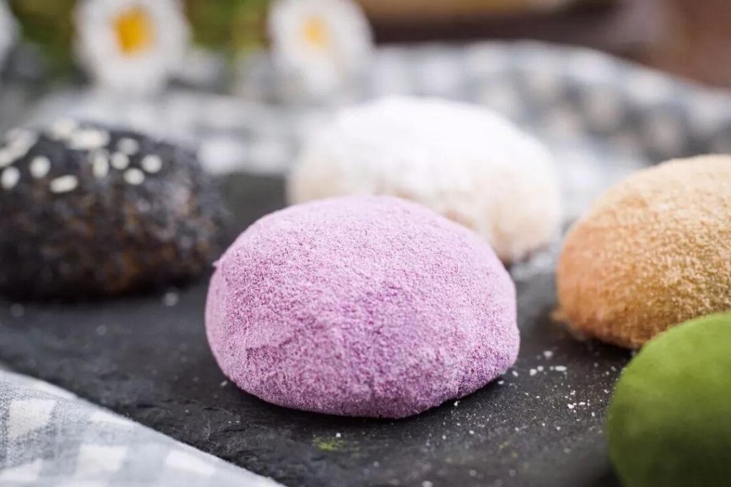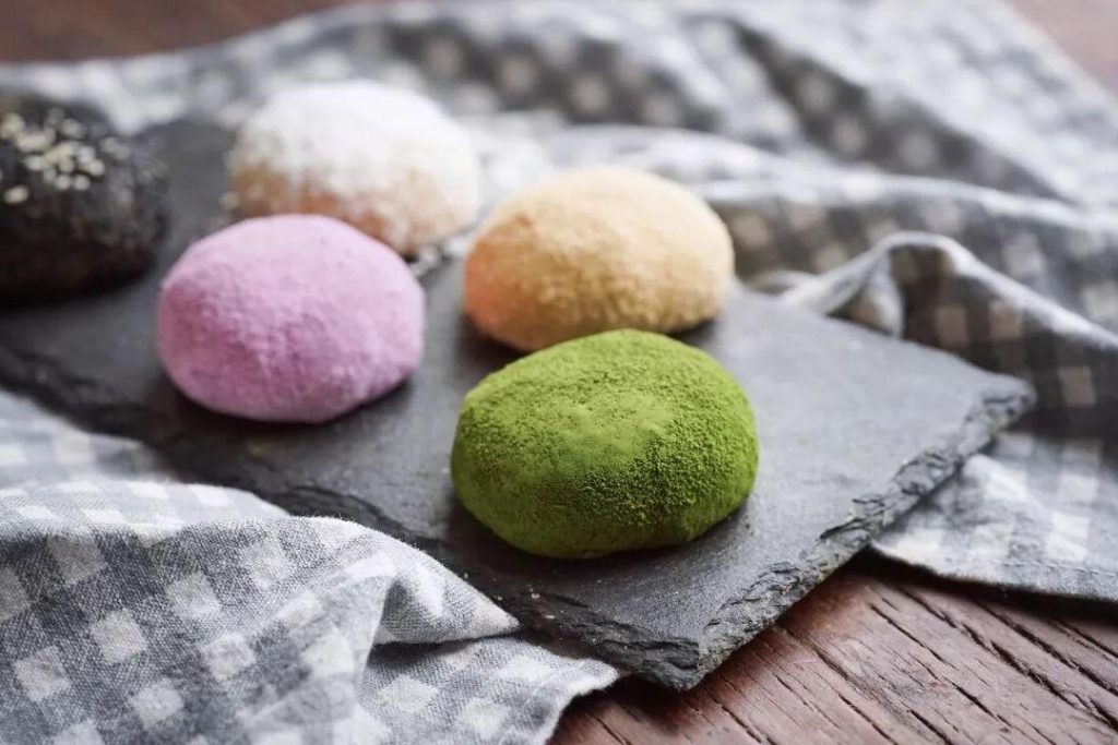 - 五种颜色,五种口味:抹茶绿、紫薯、黑芝麻、金黄豆、白椰子