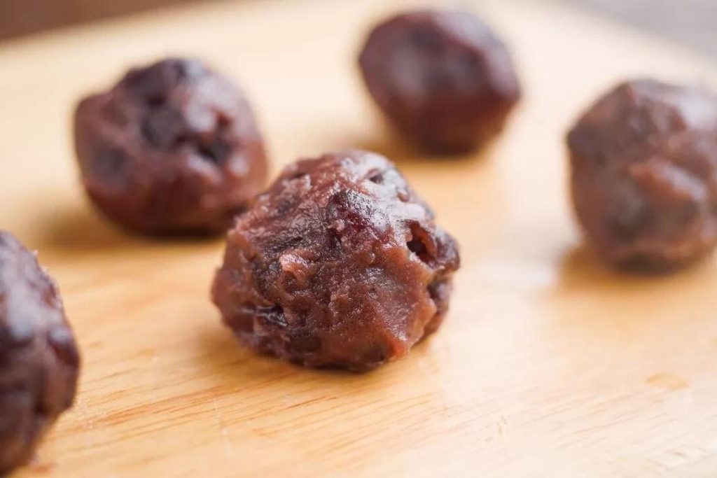 甜红豆沙和甜红豆以1:1的比例混合。搓成17克的小球。