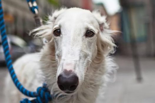 Auch genanntBarsoioder Russischer Wolfshund, diese große und anmutige Rasse kann Geschwindigkeiten von bis zu 40 Meilen pro Stunde erreichen. Trotz ihrer Geschwindigkeit sind sie in Innenräumen ruhig und still.