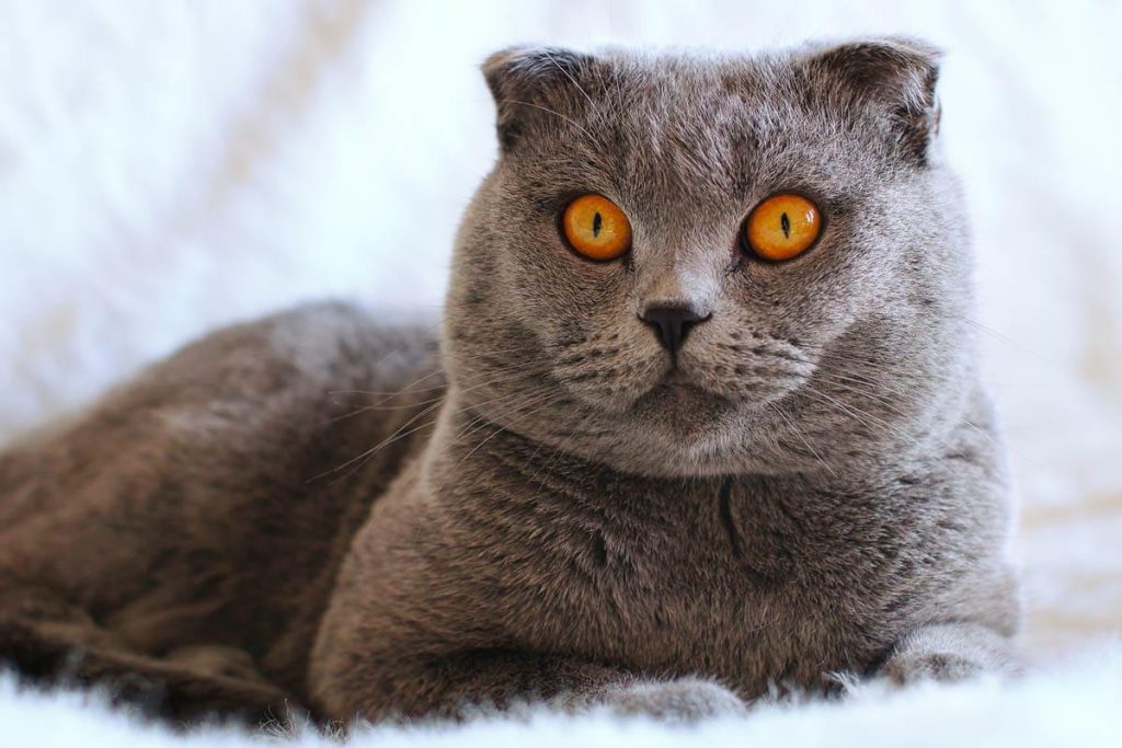 Die Scottish Fold ist sofort an ihren gefalteten Ohren, ihrem runden Gesicht und ihren ausdrucksstarken Augen zu erkennen.