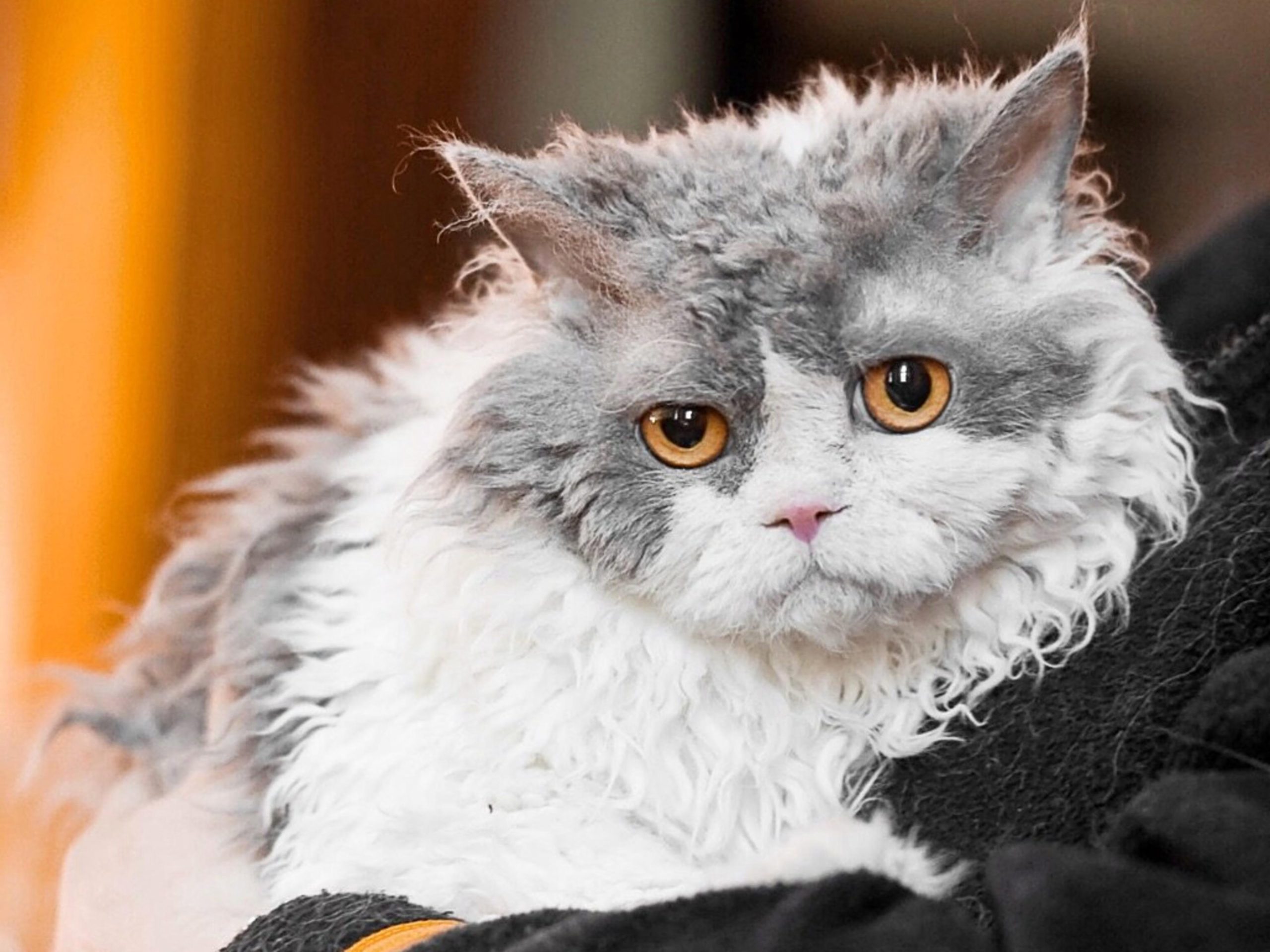 Selkirk-Rex-Katzen sind für ihr lockiges Fell und ihre runden, teddybärähnlichen Gesichter bekannt.