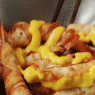 - Visuelles Drama:Goldene Soße auf orangeroten Muscheln sorgt für eine atemberaubende Präsentation
