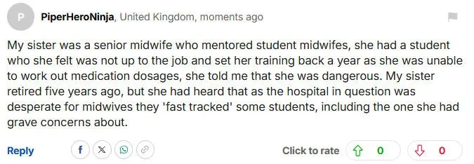 Es gab auch Forderungen nach einer strengeren Rechenschaftspflicht. Einige waren der Meinung, dass die Hebamme ihre Berufslizenz verlieren sollte.