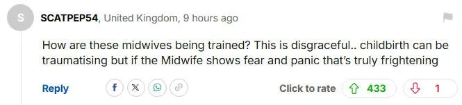 Einige fragten sich, wie eine solche Hebamme ausgebildet worden sei. Andere argumentierten, dass Panik während der Geburt eine ohnehin schon stressige Situation noch schlimmer machen könnte.