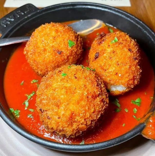Originarios de Sicilia, los Arancini son bolas de arroz fritas que son pura comida reconfortante. Con un exterior deliciosamente crujiente, esconden un interior suave y rico, típicamente relleno de risotto con azafrán, guisantes y un corazón de queso fundido.queso Mozzarellaqueso. Piense en ellos como el equivalente italiano de una bomba de sabor gourmet frita.