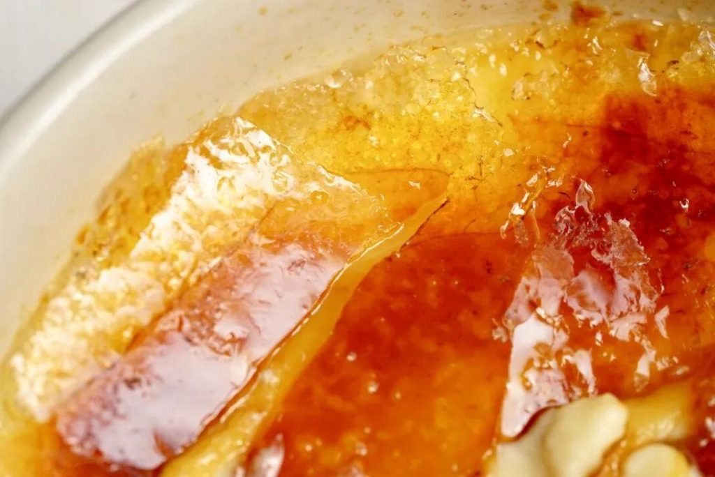 5 、La gran final:Enfriar durante al menos 5 horas, luego espolvorear con azúcar y caramelizar con un soplete de cocina hasta que esté dorado y crujiente.