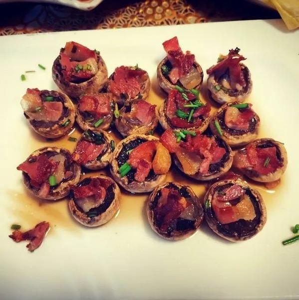 2 、Champiñones Rellenos (Champiñones Rellenos): Rellene los champiñones con una mezcla de jamón, ajo y perejil finamente picados, luego hornee hasta que estén dorados.