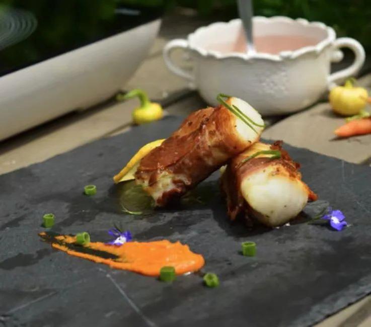 3 、Pescado Envuelto En Jamón:Envolver un pescado blanco suave como el bacalao o el rape en una loncha dejamón serranoantes de dorar. El jamón queda crujiente, bañando el pescado con una sabrosa grasa.