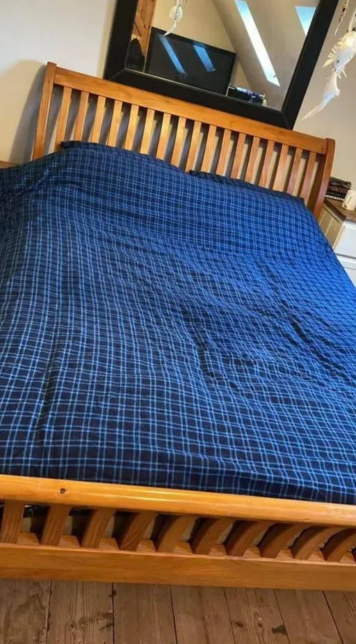 Unos días antes, Tommy, que vivía en un granero renovado, había recibido sábanas de color azul intenso de su amigo Del para mantenerse abrigado durante el invierno. Se emocionó y los puso directamente sobre la cama sin lavarlos.