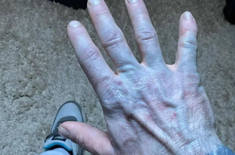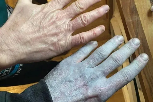 Tommy todavía estaba atontado, pero cuando miró hacia abajo, se dio cuenta de que sus manos se habían puesto azules. El amigo, un cuidador profesional familiarizado con casos graves de hipoxia, insistió en que Tommy fuera al hospital de inmediato.