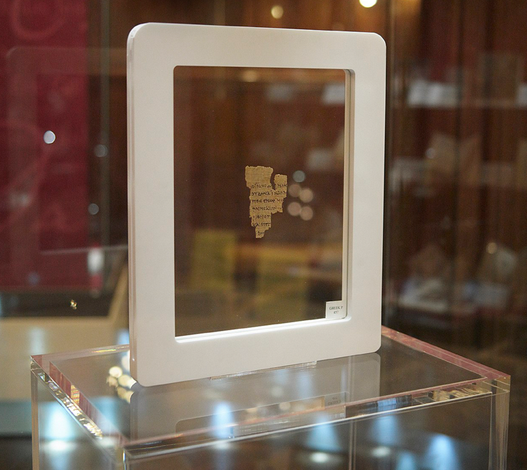 Entre los más notables se encuentra el pequeño pero invaluable Papiro P52 de la Biblioteca Rylands, un fragmento del Nuevo Testamento no más grande que un sello postal. A pesar de su tamaño, tiene un inmenso peso histórico como la pieza más antigua conocida del texto cristiano, que data de hace casi 2.000 años.