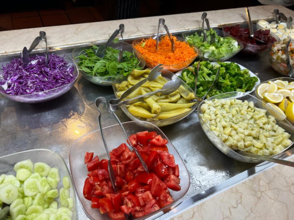 - Salade composée :Légumes frais avec tomates, oignons et olives