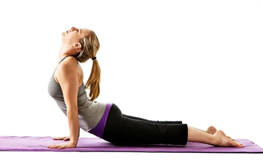 Allongez-vous sur le ventre sur le tapis, les deux jambes tendues vers l’arrière et rapprochées. Placez vos paumes à côté de votre cage thoracique, les coudes serrés vers votre corps. Pendant que vous inspirez, appuyez fermement entre vos mains, redressez vos bras et soulevez votre poitrine.