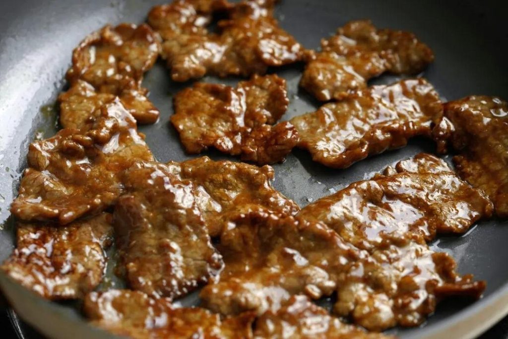 Faites chauffer une poêle à feu moyen et ajoutez 1/2 cuillère à soupe d’huile. Ajoutez les tranches de bœuf marinées en une seule couche. Cuire jusqu’à ce que le bœuf change de couleur et soit cuit à environ 80 %, soit environ 1 à 2 minutes. Retirer et réserver. Ne faites pas trop cuire; le bœuf finira de cuire plus tard.