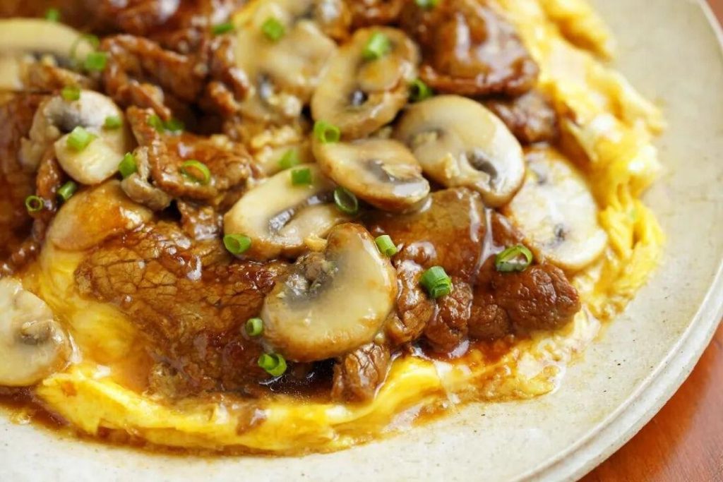 - Riche en protéines, faible en glucides :Le bœuf et les œufs fournissent des protéines ; les champignons ajoutent des fibres