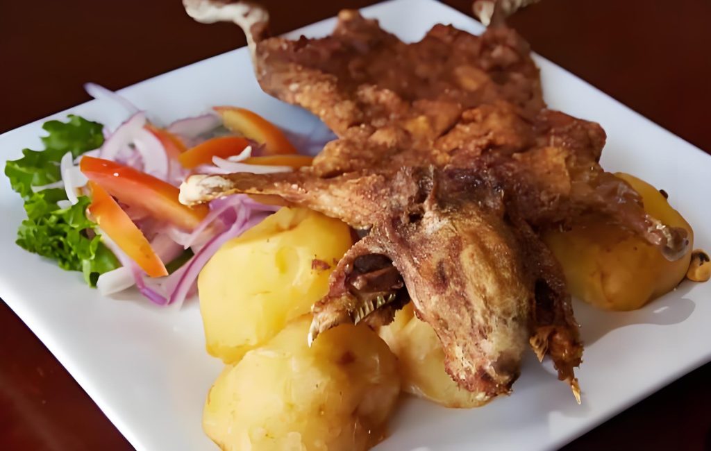 Un plat andin populaire est le cochon d’Inde frit. Les femmes locales élèvent traditionnellement des cobayes à la maison. L’animal est généralement rôti entier ou bouilli puis frit, farci d’épices et de maïs.