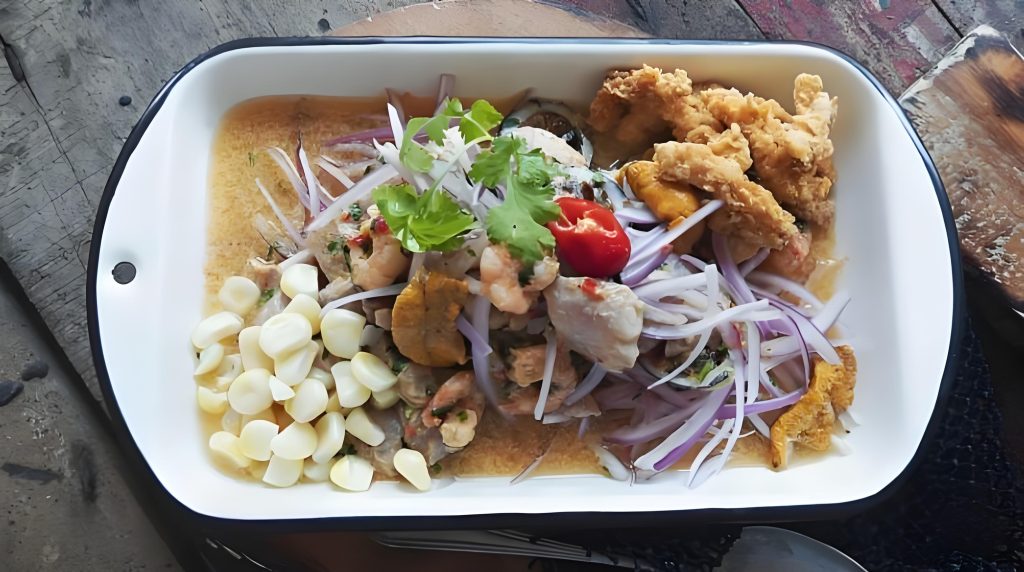 Populaire près de la frontière équatorienne, ce ceviche est composé de palourdes noires et généralement servi avec du maïs grillé.
