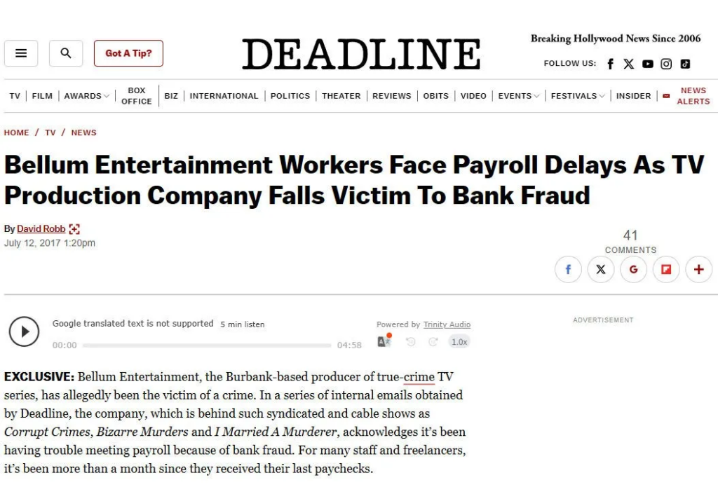 ストリーミングテレビプラットフォームはより強力になり、従来のテレビを視聴する人は減りました。 Bellum Entertainment は一時的な成功を収めましたが、その後衰退しました。 2017年までに同社は苦境に陥った。新しいコンテンツを作成したり、基本的なコストをカバーしたりすることはできません。