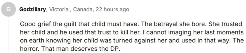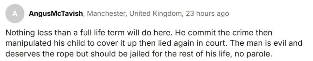 ネット上のコメントでは、彼は無慈悲で危険だと評されていた。同情は圧倒的に子供と被害者に集中した。