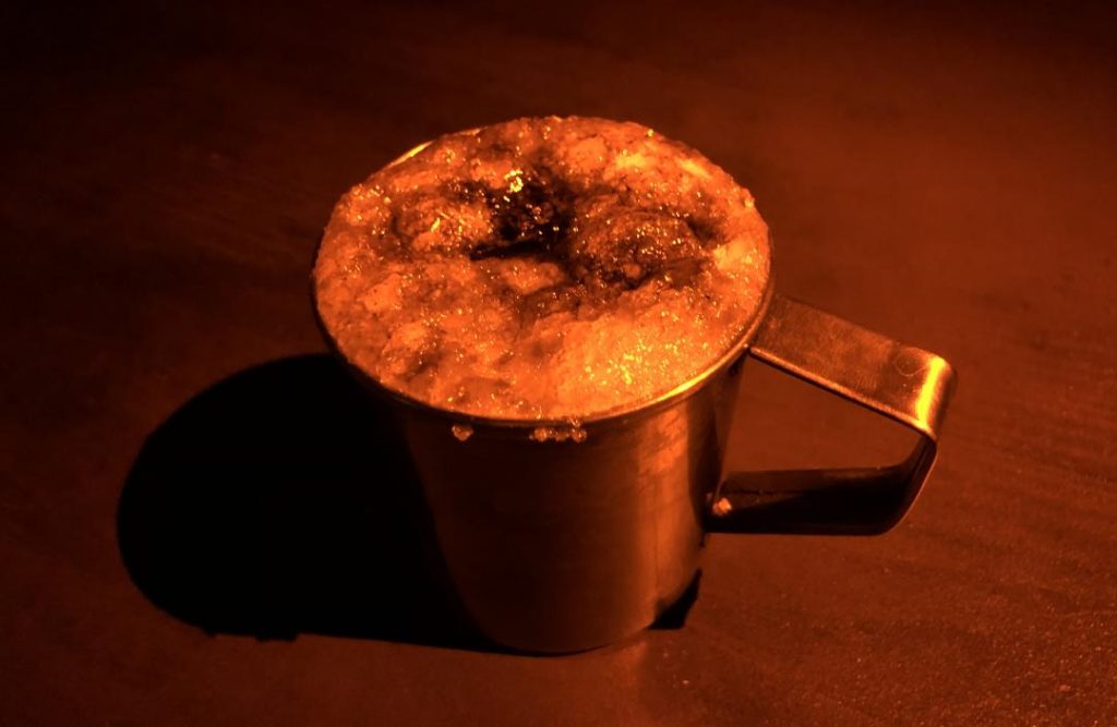 暗闇に近い中、突然の炎が顔を照らし、金属製のカップから輝き、砂糖の結晶をキャラメル化し、輝く皮を作ります。影に包まれたバリスタは、巨匠の画家のような正確さで動き、シーン全体がレンブラントの絵画を彷彿とさせます。それはユニークなコーヒー体験すべての感覚を刺激します。