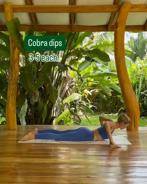 息を吸いながら胸を持ち上げてコブラのポーズにします。