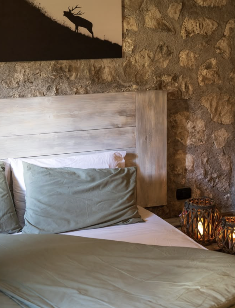屋外で一日を過ごした後は、ブナの森に囲まれた居心地の良い小屋に戻ります。