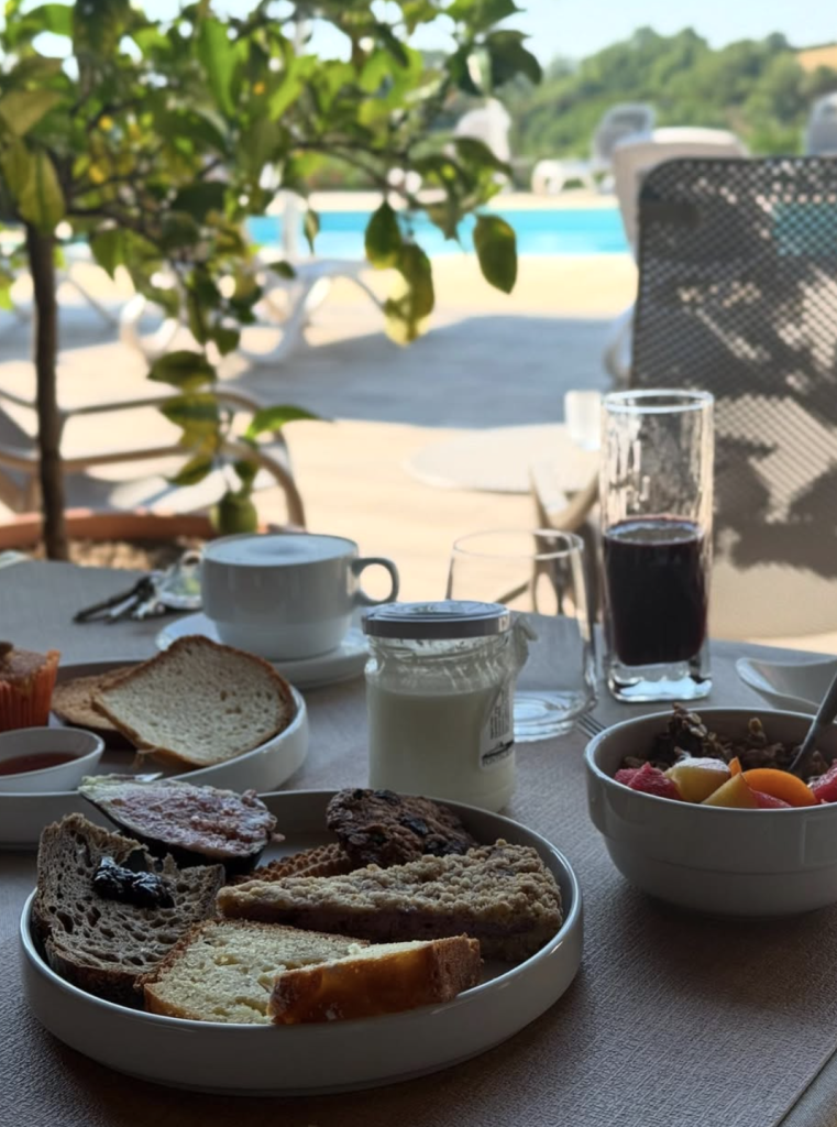 翌朝は穏やかに始まります。窓から差し込む太陽の光で目覚め、新鮮なフルーツ、ヨーグルト、ケーキ、濃いイタリアン コーヒーなどの自家製朝食をお召し上がりいただけます。