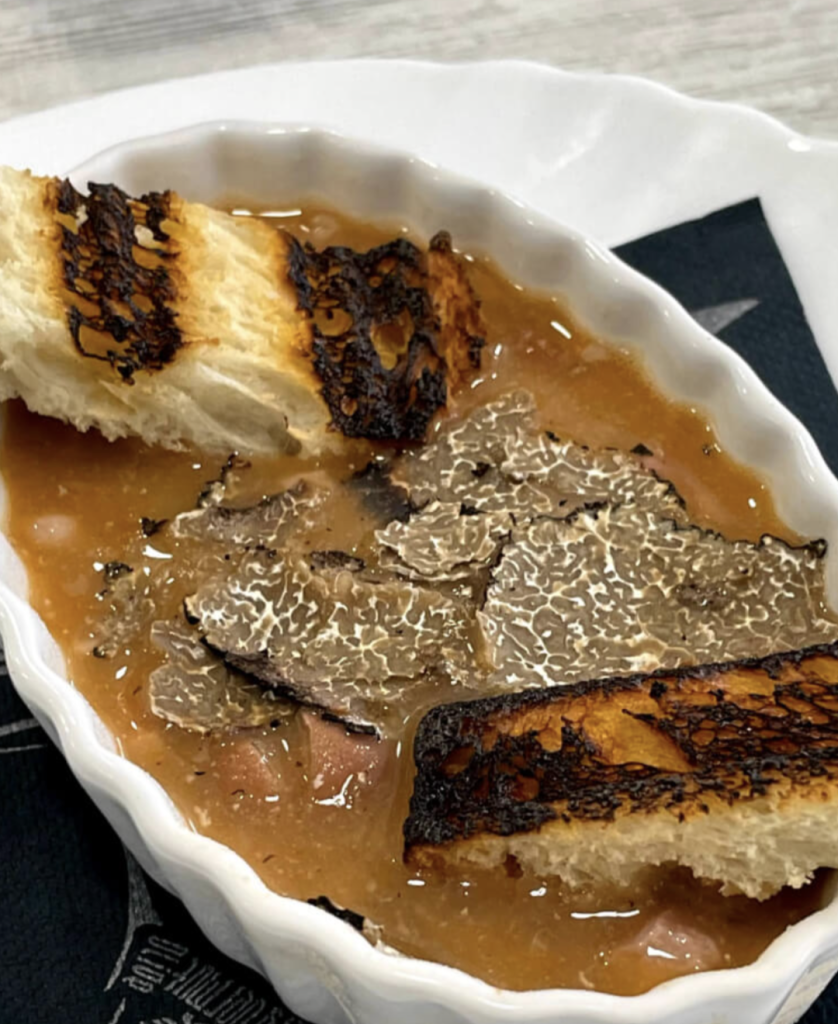 ランチタイムには、ハンターの家に迎えられ、シンプルでありながら特別な食事を楽しめます。温かい料理の上に削られた新鮮なトリュフは、最も質素な食材さえも魔法のように変えます。