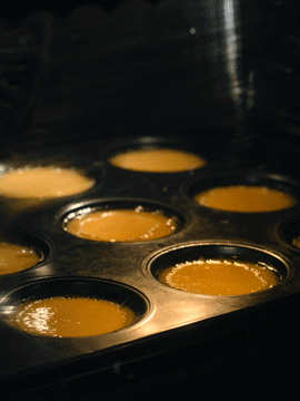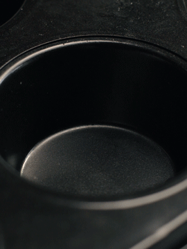 - 머핀 틀의 각 컵에 약 ½ 티스푼의 기름을 붓습니다. 페이스트리 브러시를 사용하여 측면을 철저히 코팅하십시오.