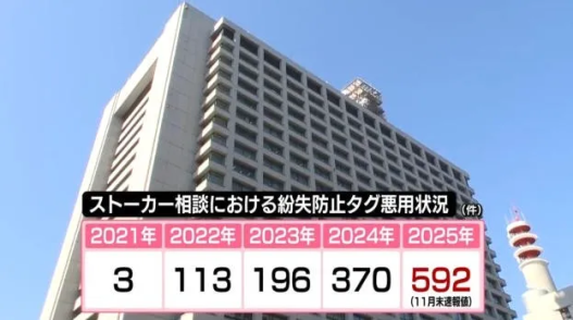 일본 경찰청에 따르면, 추적 기반 괴롭힘과 관련된 상담은 2023년 196건에 달합니다.
