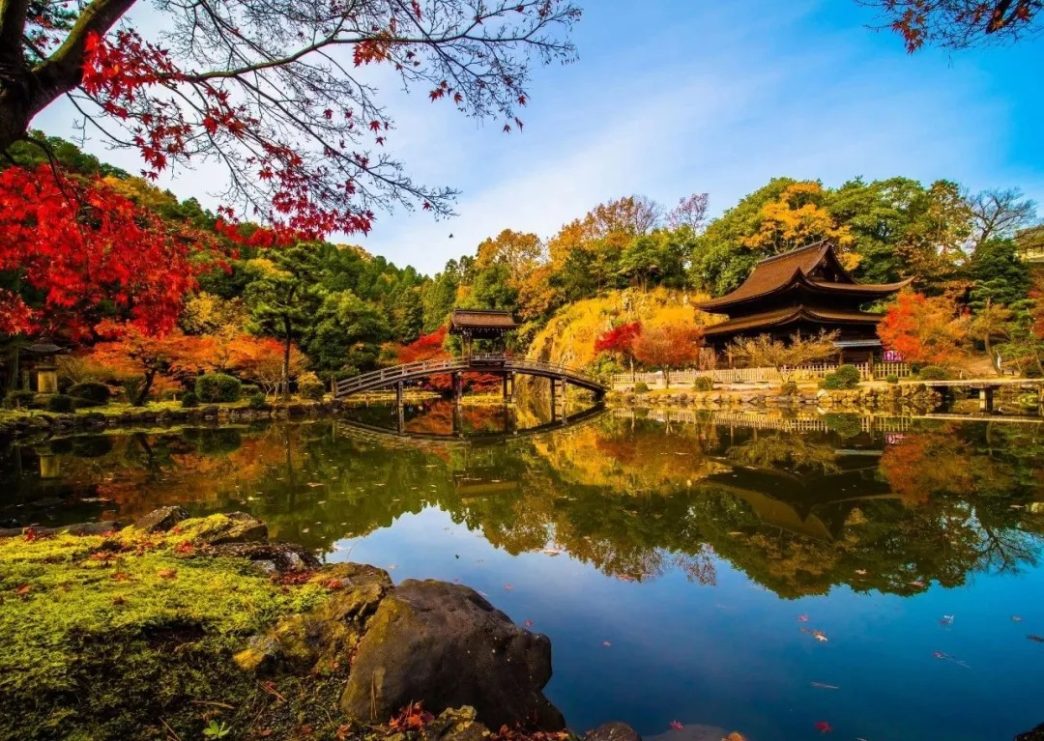 아치형무진교빛나는 단풍잎으로 둘러싸인 아래 연못에 부드럽게 반사됩니다. 더 유명한 단풍 명소에 비해 사원은 상대적으로 조용합니다. 천천히 산책하고, 평화로운 사진을 찍고, 사색의 순간을 즐기기에 이상적입니다.