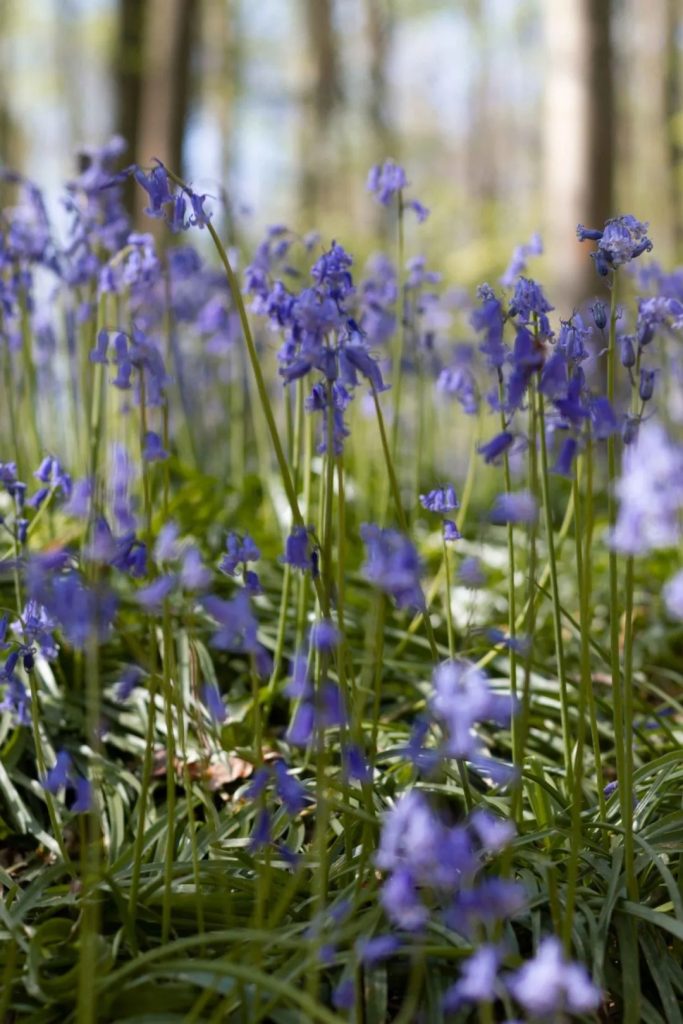 A cada primavera, milhões de campânulas selvagens – especificamente Hyacinthoides non-scripta – cobrem o chão da floresta sob imponentes faias. O resultado? Um vasto e brilhante tapete de cores que parece quase de outro mundo.