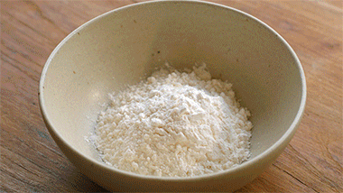 Em uma tigela separada, misture a farinha, o amido de milho, o sal e a pimenta-do-reino. Reserve.