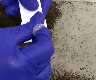 雄性蚊子啜飲甜味溶液,而雌性蚊子則以甜味為食動物血鋪在人造“皮膚”膜上——模擬人類皮膚以獲得營養。