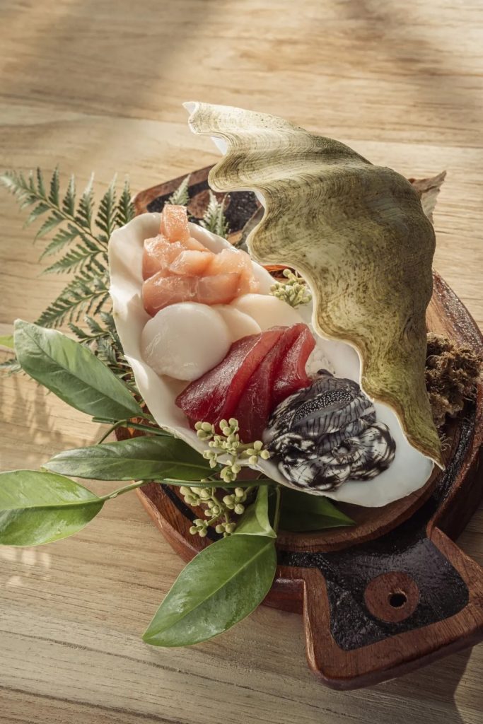 廚師團隊主打新鮮的帕勞和太平洋食材——當地捕獲的魚類、熱帶風味以及清淡而富有創意的醬汁。菜單在亞洲和西方美食之間輪換,確保整個航程的多樣性。