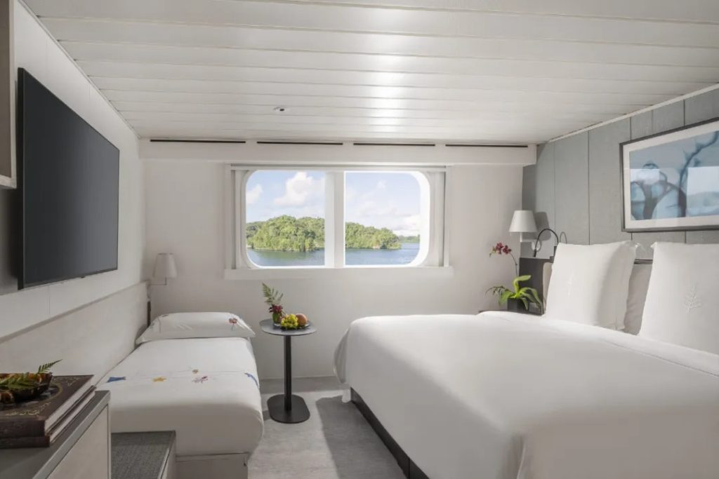 位於上層甲板的船頭,探險家套房提供全景窗戶和私人陽光甲板