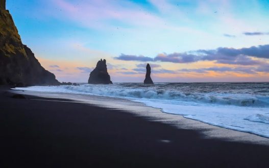 傳奇的雷尼斯德蘭加爾海蝕柱 (Reynisdrangar Sea Stacks) 就在近海處拔地而起,旁邊是高聳的玄武岩柱,形似巨大的石管風琴,堪稱非凡的地質奇觀。