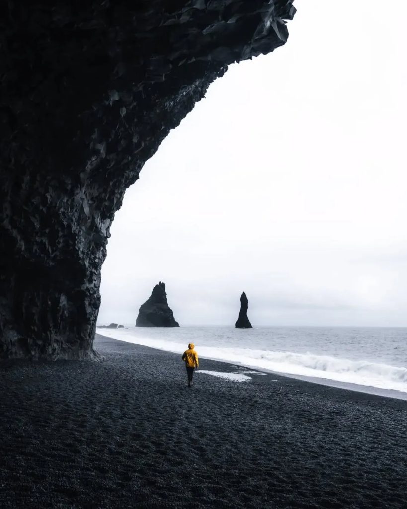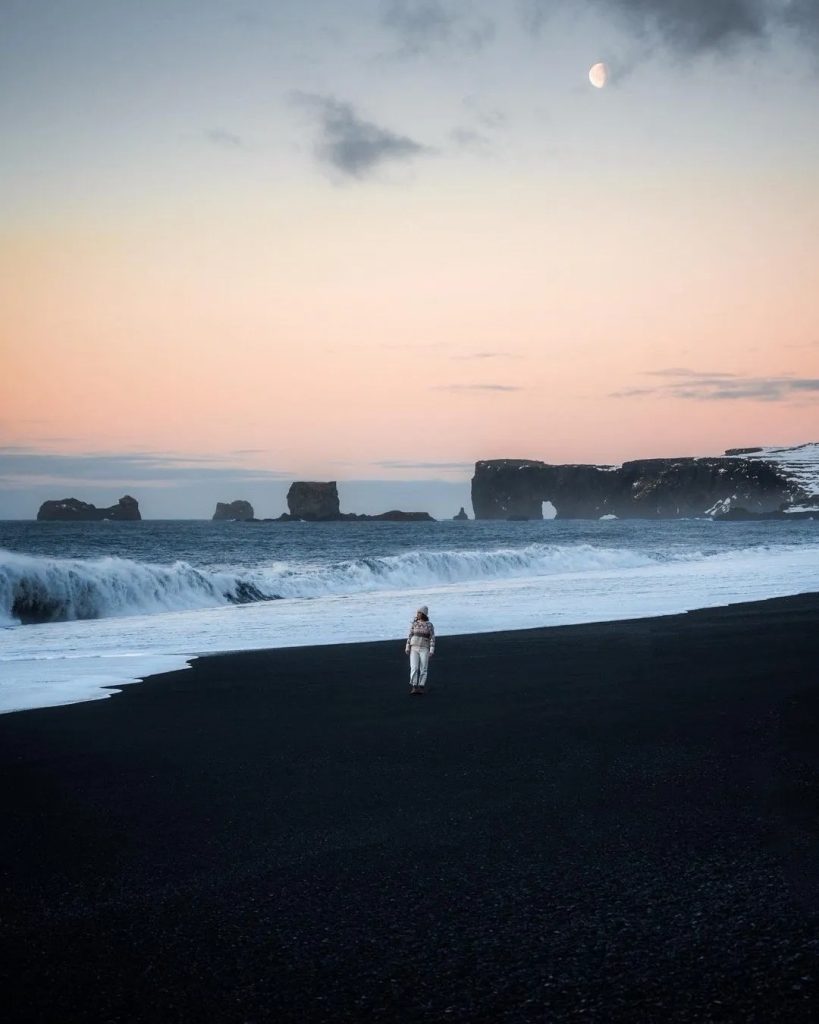 第一次踏上其中,場景感覺不真實:腳下是漆黑的沙子,冰冷的白色波浪拍打著岸邊,天空塗上無盡的灰色和藍色色調,就像一幅栩栩如生的極簡主義油畫。