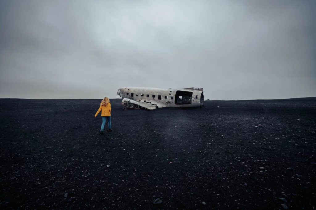 1973年,一個美國海軍 DC-3 飛機緊急迫降在廣闊的黑色沙灘上索爾黑馬桑德爾。奇蹟般的是,每個人都活了下來,但飛機卻被拋在了後面。