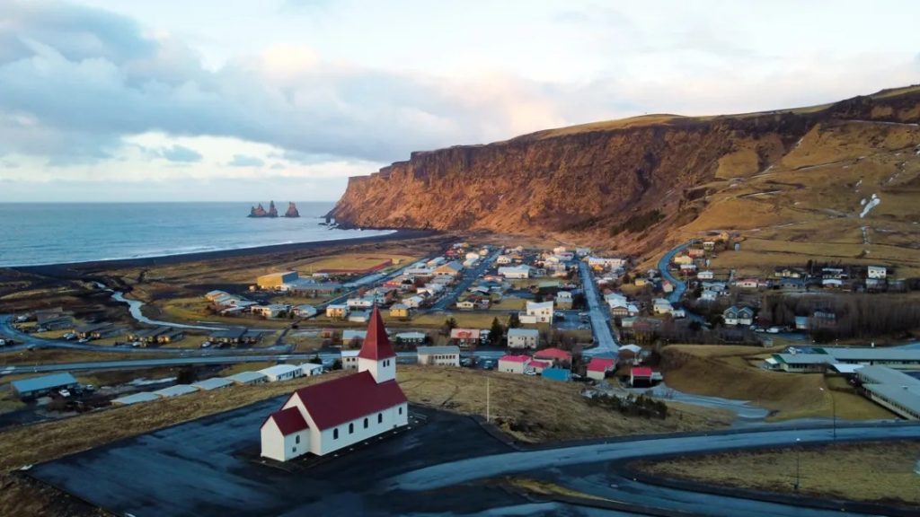 與雷尼斯菲賈拉 (Reynisfjara) 的狂野能量相比,維克 (Vík) 的黑沙灘感覺明顯溫和。來自山頂維克教堂風景如明信片般完美:黑色的沙灘、翻滾的白色海浪,以及遠處從海中升起的雷尼斯德蘭加爾 (Reynisdrangar)。